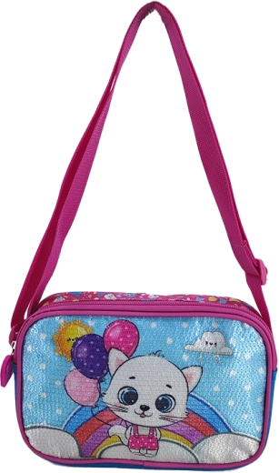 Roztomilá detská taška cez plece s motívom mačičky a farebných balónikov poteší každú malú parádnicu. Je ľahká, praktická a ideálna na výlety, do škôlky aj na nákupy. Vďaka kompaktným rozmerom sa pohodlne nosí a pojme všetky drobné nevyhnutnosti.