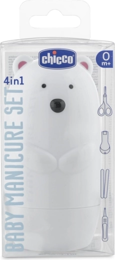 Sada manikúry CHICCO pre najmenších je navrhnutá s dôrazom na maximálnu bezpečnosť a pohodlie. Rozkošné prenosné puzdro v dizajne polárneho medveďa udrží všetko pokope a vďaka kompaktným rozmerom sa ľahko zmestí do prebaľovacej tašky.