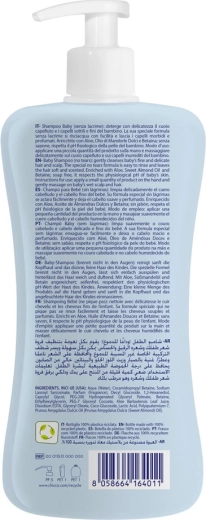 Ľahká umývacia báza s decylglukozidom a kokamidopropylbetaínom minimalizuje podráždenie, zatiaľ čo sladký mandľový olej vyživuje a zjemňuje. Produkt je dermatologicky a pediatricky testovaný, vhodný na každodenné používanie a pre bábätká už od narodenia.