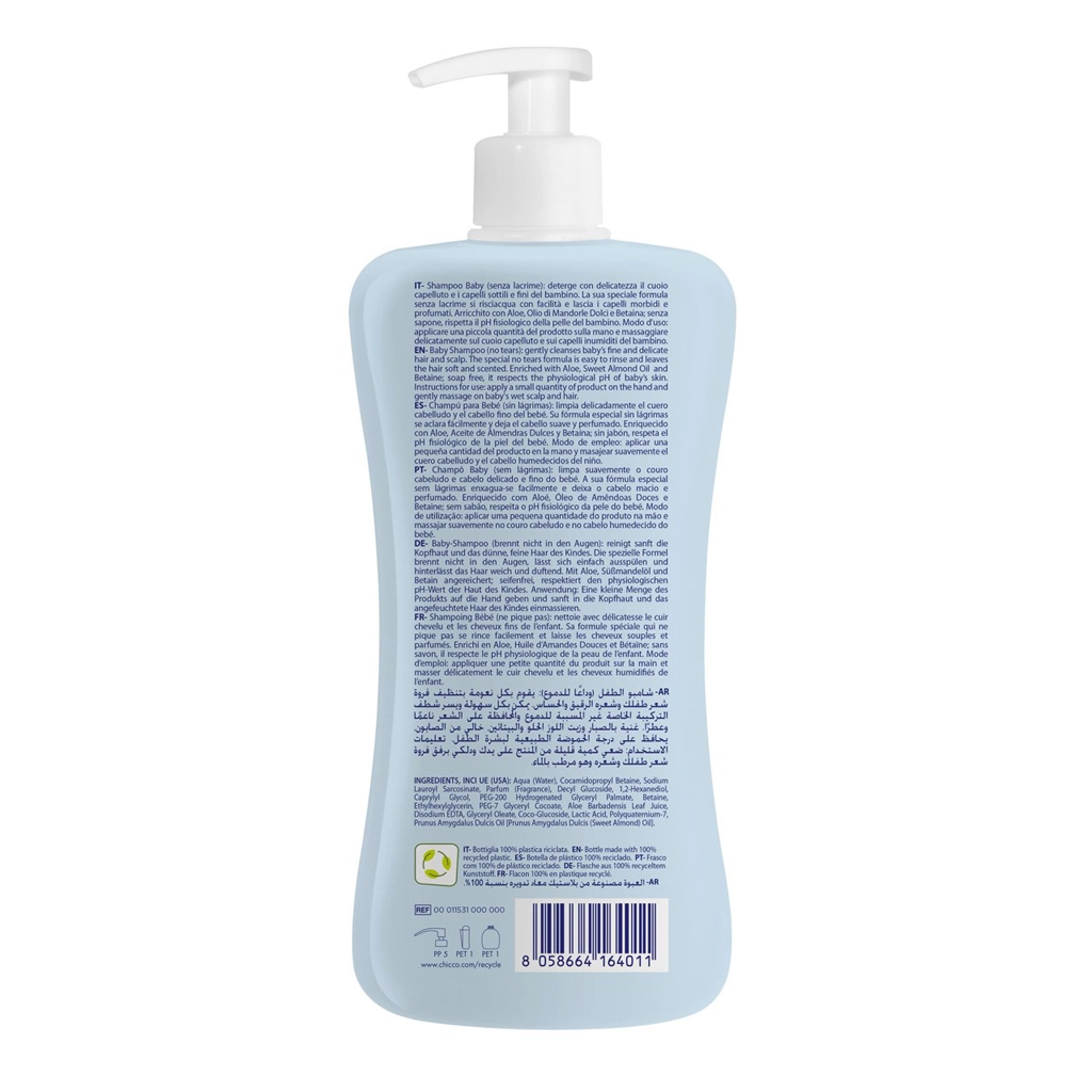 Jemný detský šampón CHICCO Natural Sensation s aloe na každodenné umývanie od narodenia. Šetrne čistí, chráni prirodzené pH a zanecháva vlásky mäkké, voňavé a ľahko rozčesateľné. Obsahuje aloe vera na hydratáciu a upokojenie a sladký mandľový olej na zjemnenie. Dermatologicky a pediatricky testované, vyrobené v Taliansku.