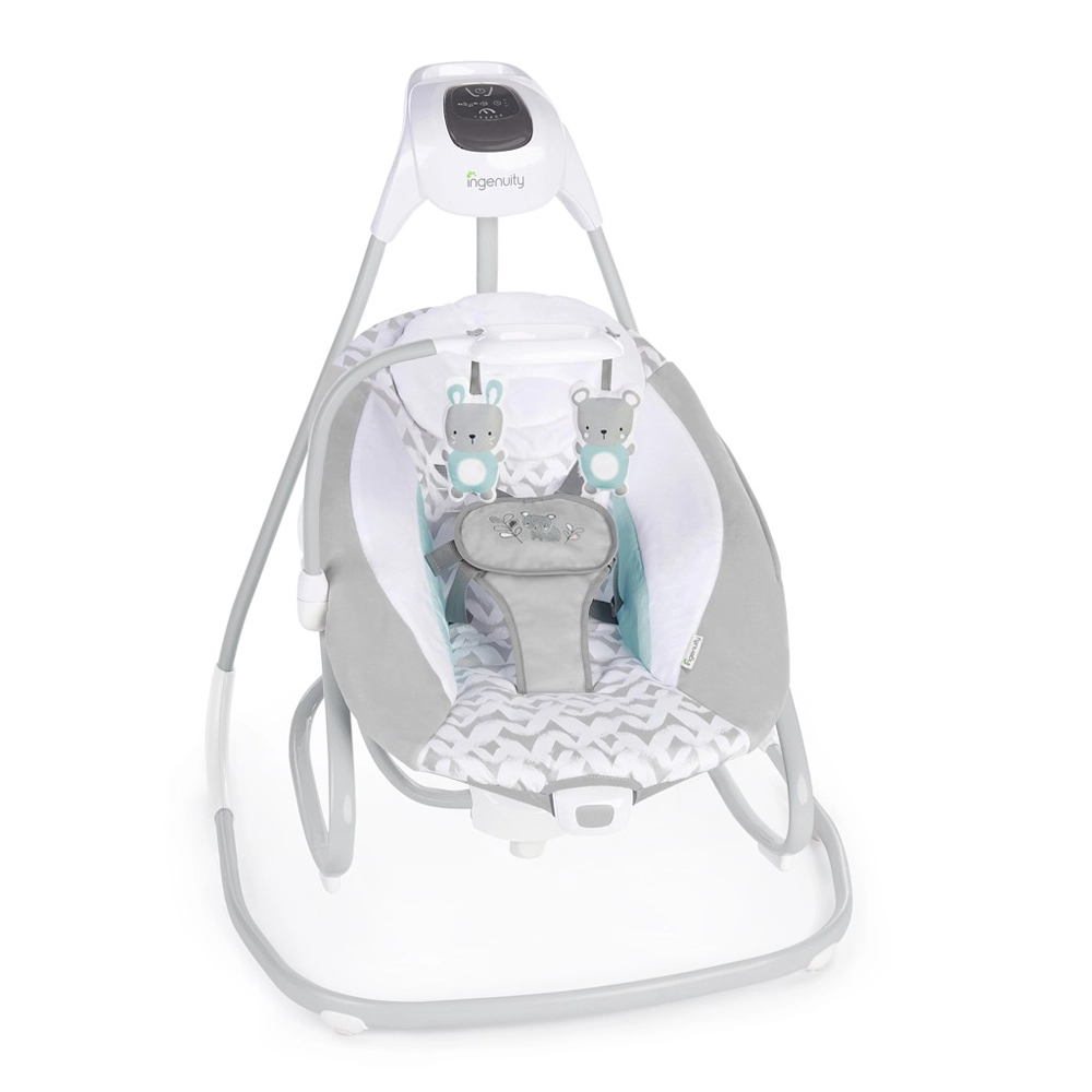 Ingenuity Raylan prináša pokoj a pohodlie v kompaktnom prevedení. Vďaka dvom režimom – ako hojdačka alebo samostatná kolíska – sa ľahko prispôsobí dennej rutine. Tichá technológia WhisperQuiet, až 6 úrovní hojdania a možnosť otočenia sedadla o 180° pre hojdanie v 3 smeroch pomáhajú rýchlejšie upokojiť a zabaviť bábätko. Časovač hojdania (30/45/60 min) a automatické vypnutie melódií a vibrácií šetria energiu aj vašu pozornosť.