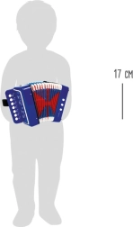 Akordeón je vyrobený prevažne z odolného plastu s textilnými a papierovými časťami, aby bol pre deti bezpečný a vizuálne atraktívny. Skvele poslúži doma, v škôlke aj v hudobných krúžkoch ako motivačná pomôcka pred skutočnou výukou hry na nástroj.