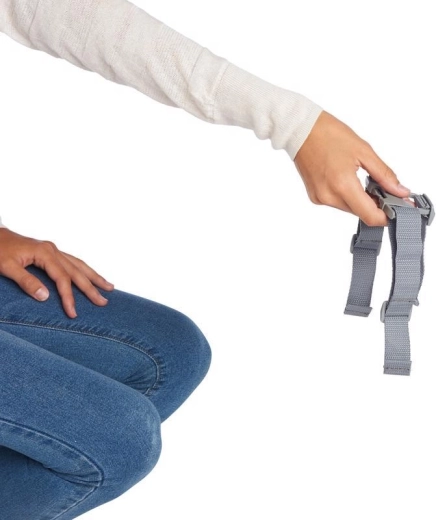 Podsedák ľahko pripevníte pomocou nastaviteľných popruhov a praciek. Stabilita na stoličke minimalizuje posuny a zabezpečuje bezpečné sedenie pri stole.