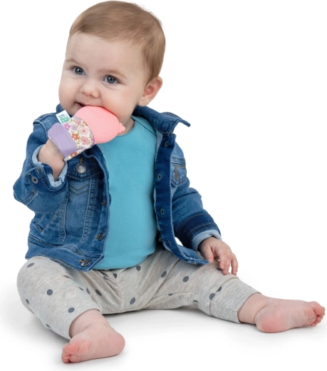 Vďaka nastaviteľnému pásiku rukavička dobre drží na rúčke, pomáha predchádzať poškrabaniu a je skvelá pre najmenších, ktorí ešte nedokážu hryzátko uchopiť. Ľahká a pohodlná konštrukcia podporuje hmatové objavovanie a ponúka úľavu pre rastúce zúbky doma aj na cestách.