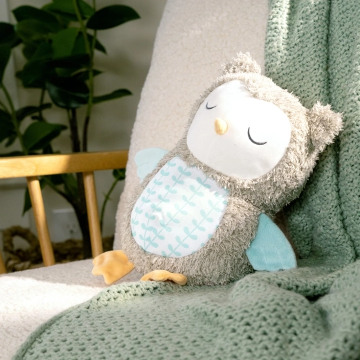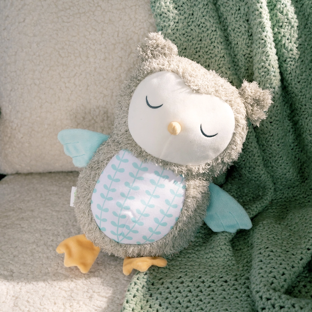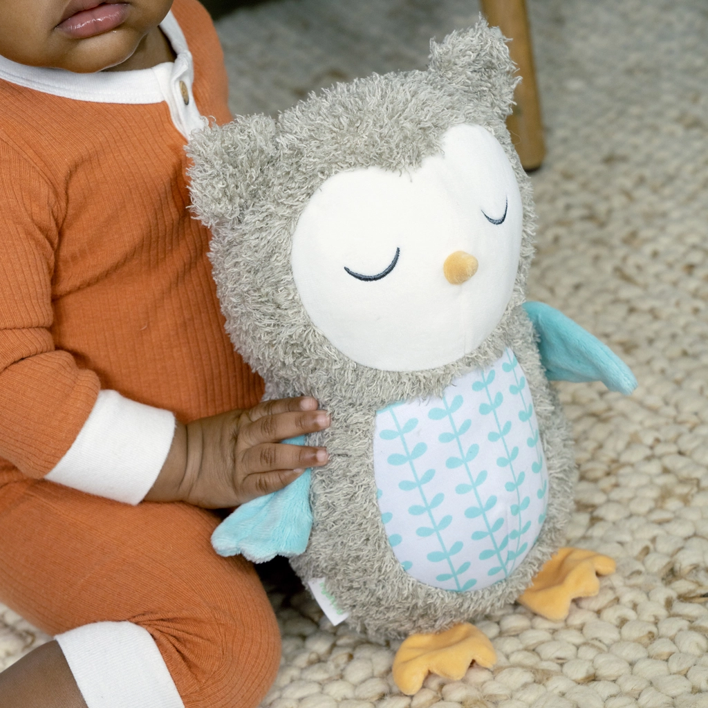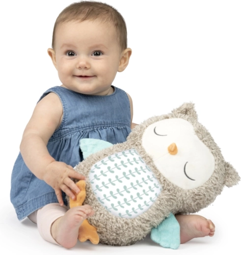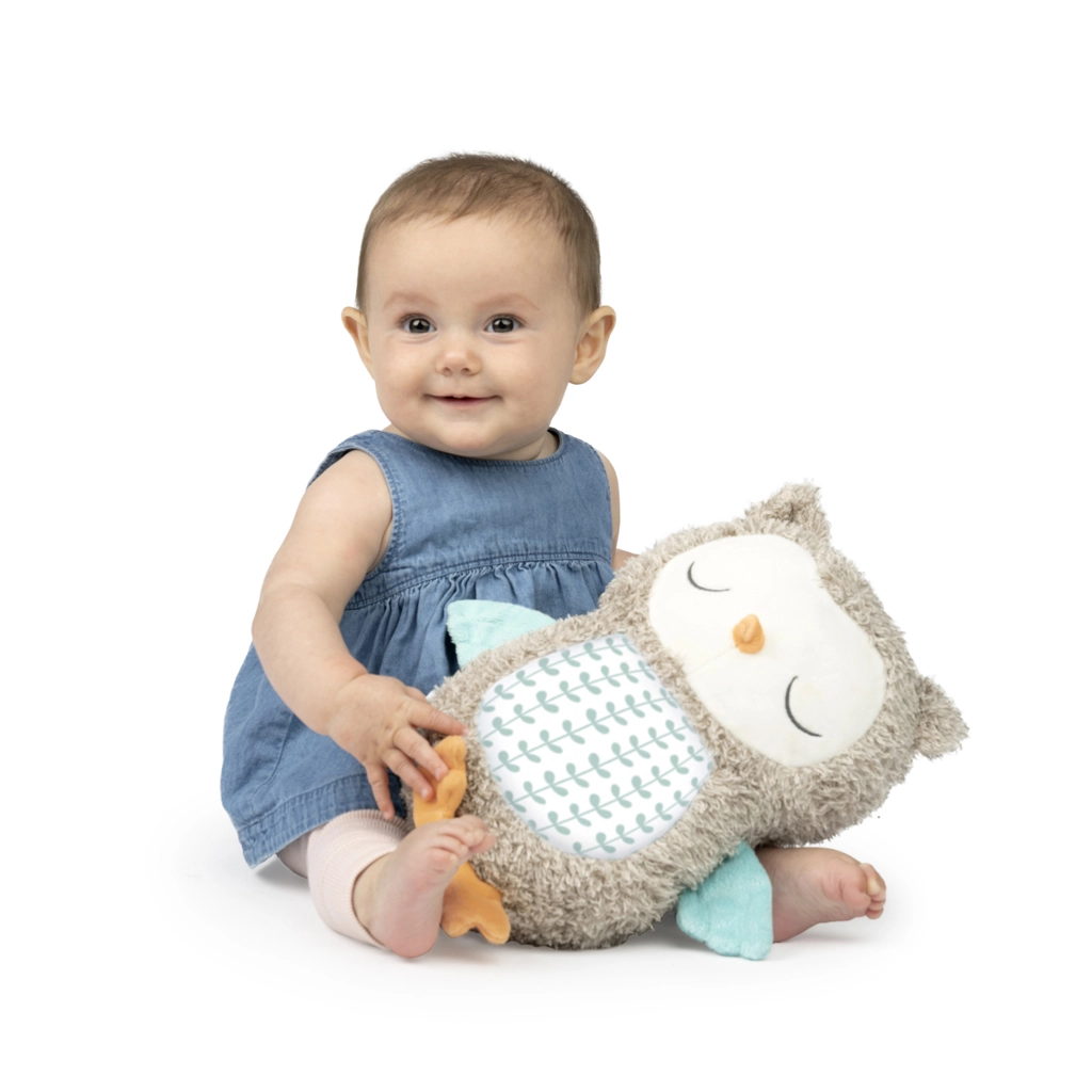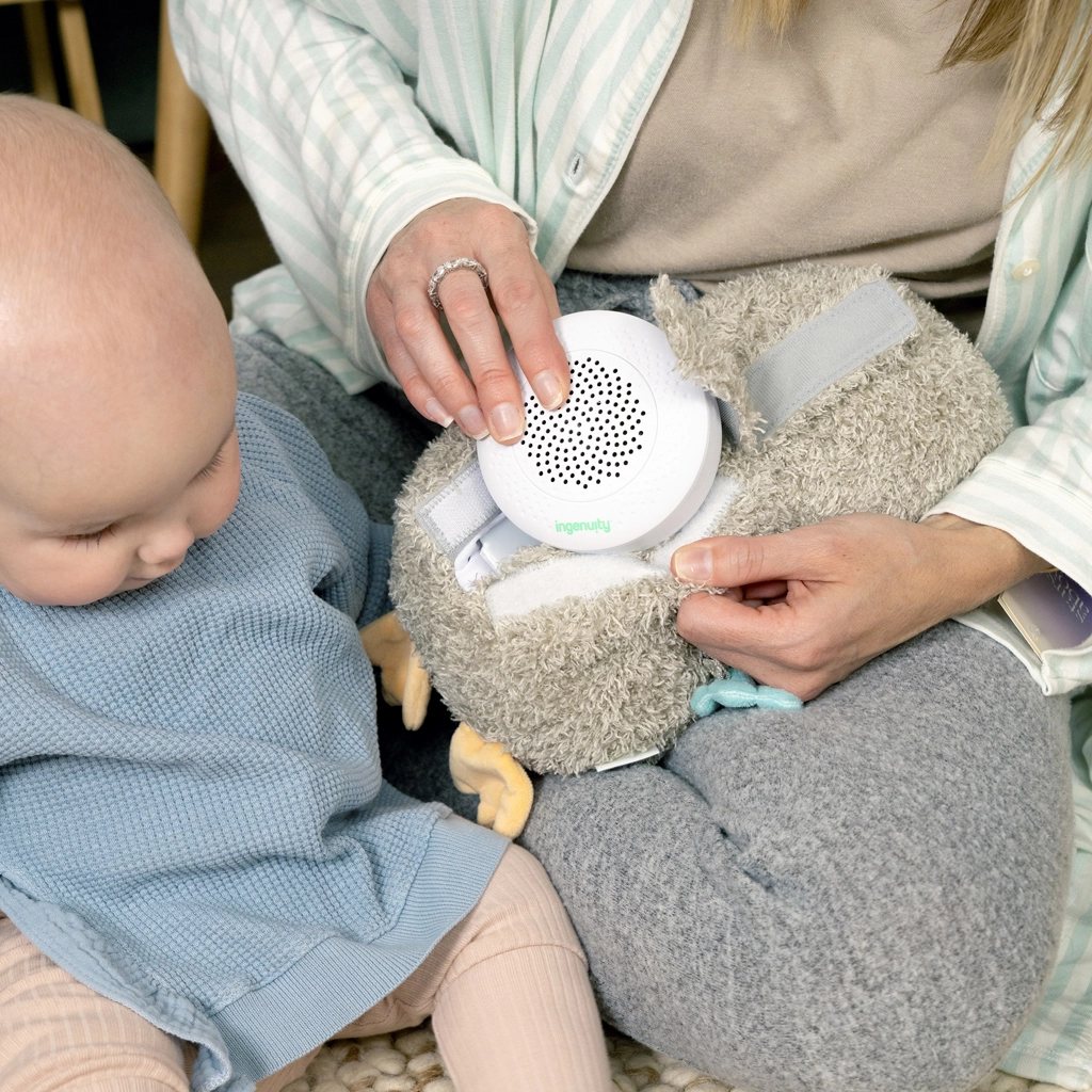 Roztomilá plyšová sova Nally od Ingenuity je hebký kamarát a zároveň upokojujúci spoločník na spánok od narodenia. Vďaka Bluetooth reproduktoru v brušku prehrá ukolísanky a zvuky prírody s časovačom 30/60/90 min, po ktorom sa sama vypne. Sovička je bezpečná pre najmenších (vyšívané detaily), možno ju pripevniť k postieľke a po vybratí modulu ju ľahko vyperiete v práčke.