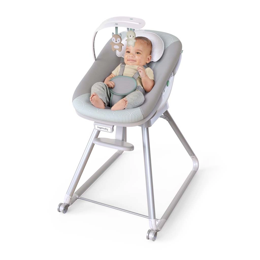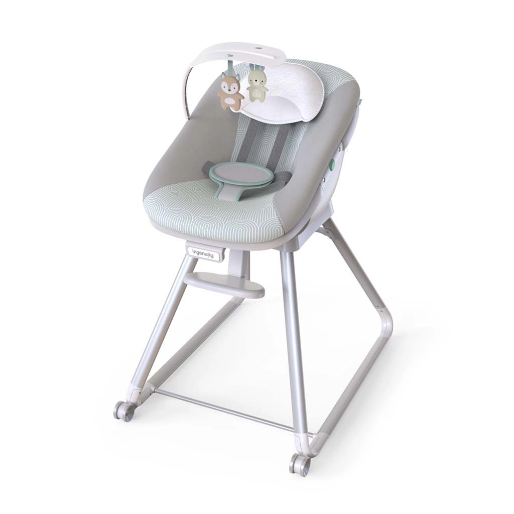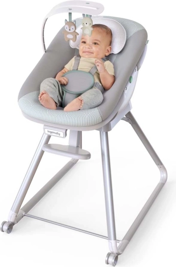 Univerzálna detská stolička 6v1 INGENUITY Beanstalk rastie s vaším dieťaťom od narodenia do 5 rokov. Ponúka 6 režimov používania, vrátane ležadla s vibráciami, vysokej stoličky s pultíkom, stoličky k jedálenskému stolu a stoličky pre batoľa. Vďaka 5-bodovému pásu, nastaviteľnému sklonu, opierke nôh a ľahko umývateľným dielom bez BPA zaistí bezpečné a pohodlné sedenie každý deň.