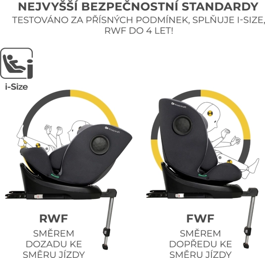 Otočný mechanizmus umožňuje v priebehu chvíľky natočiť sedačku k sebe, bezpečne pripútať dieťa a prepínať medzi RWF a FWF bez vybratia zo auta.