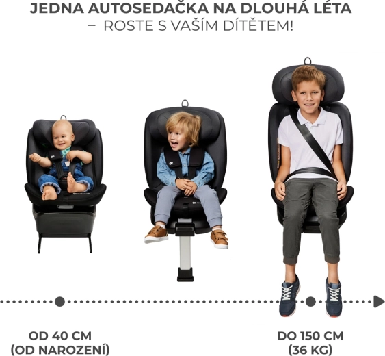 - Dlhá použiteľnosť – od novorodenca do cca 12 rokov (40–150 cm).