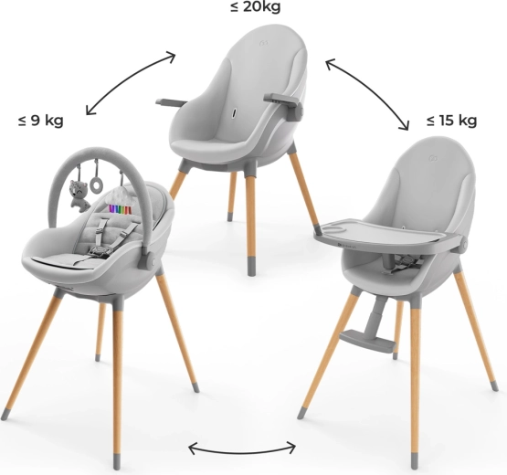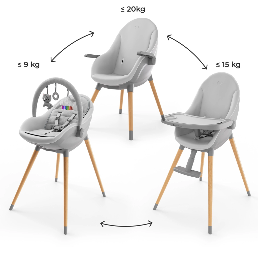 Kinderkraft FINI UP prináša chytré riešenie pre každodenný život s bábätkom. V jednom dizajne spája pohodlné ležadlo pre prvé mesiace, bezpečnú jedálenskú stoličku pre obdobie príkrmov a štýlovú nízku stoličku pre samostatné sedenie pri stole. Vďaka rýchlemu nastaveniu bez náradia ľahko prepnete medzi režimami a prispôsobíte výšku sedenia aj pultík aktuálnym potrebám dieťaťa.