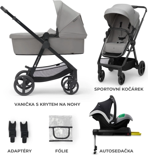- Kombinovaný kočík 4v1 (vanička/športové sedadlo + autosedačka + základňa + adaptéry)