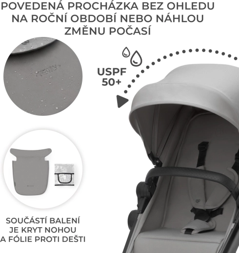 - Ochranná strieška UPF50+ – vodoodolná, s okienkom a slnečnou clonou.