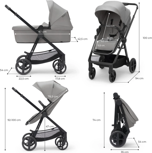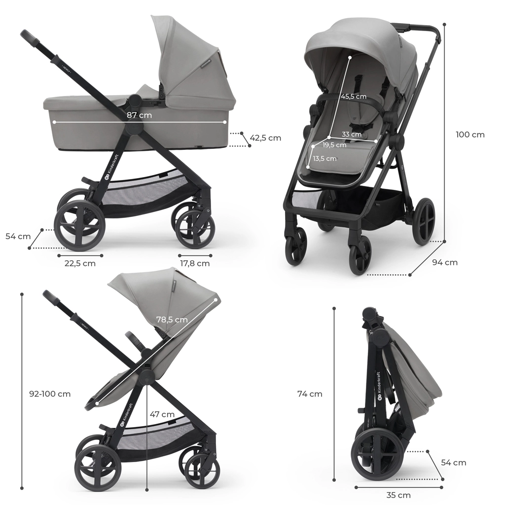 KINDERKRAFT Newly 4v1 je všestranný kočík od narodenia až do 22 kg, ideálny do mesta aj na výlety. Vďaka hmotnosti len 7,5 kg sa skvelo prenáša, ľahko sa skladá aj s nasadeným sedadlom a v zloženom stave zaberie minimum miesta v kufri. Sedadlo 2v1 rýchlo zmeníte z hlbokej vaničky na športové sedenie, a to v smere aj proti smeru jazdy.
