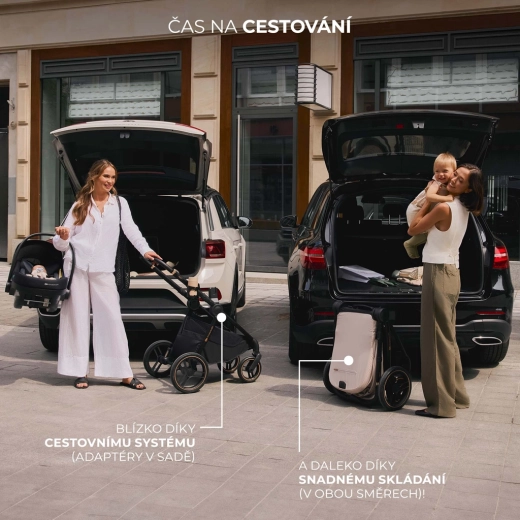 Rodičia ocenia intuitívnu STOP & RIDE brzdu, magnetickú pracku pre rýchle zapnutie, prateľné poťahy a praktické skladanie s funkciami SELF STANDING a AUTO LOCK pre ľahké prenášanie aj skladovanie. Veľký košík unesie až 5 kg a vďaka univerzálnym adaptérom pre autosedačku vytvoríte behom chvíľky šikovný travel systém. Súčasťou je bohaté príslušenstvo: pláštenka, sieťka proti hmyzu, nánožníky, držiak na nápoj, prebaľovacia taška a ďalšie.