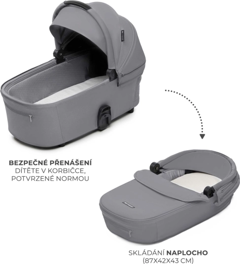Mäkký matrac, praktická rukoväť na prenášanie a veľkorysé vnútorné rozmery zaisťujú pohodlie bábätka do 9 kg. Ideálne pre pokojný spánok na cestách.