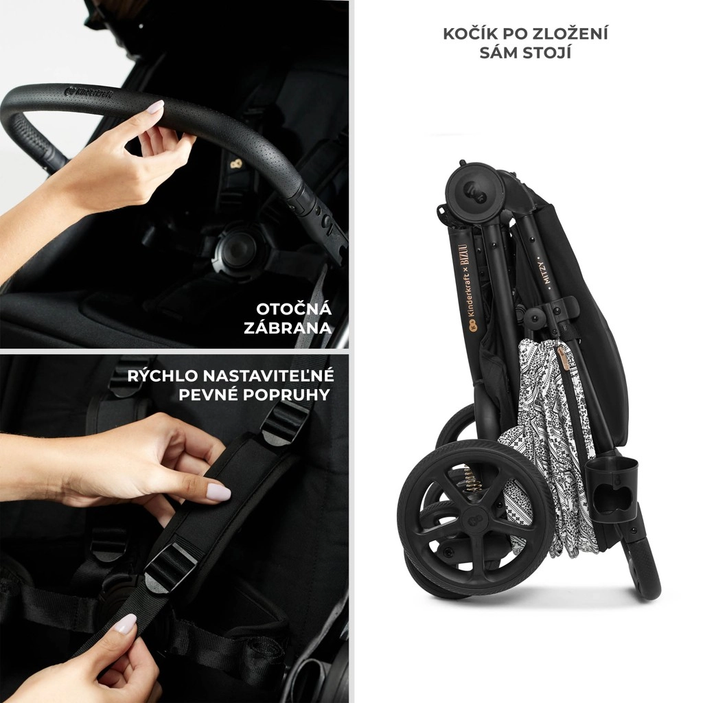 Kolekcia Bizuu spája štýl a funkčnosť: kočík Kinderkraft Mitzy v limitovanej edícii Bizuu vyniká elegantným vzhľadom a premyslenými detailmi. Dlhé XL sedadlo zaistí priestor a pohodlie aj pre väčšie deti, plynulé a tiché polohovanie chrbtovej opierky a 3-stupňové nastavenie opierky nôh prinášajú ideálnu pozíciu na spánok aj pozorovanie okolia. Rodičia ocenia 3-stupňovo nastaviteľnú rukoväť a ľahký rám pre jednoduchú manipuláciu.