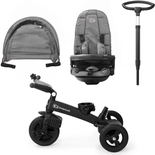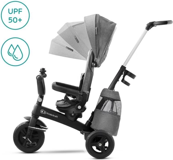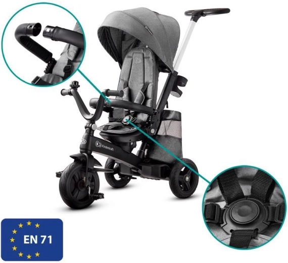 Táto prémiová trojkolka kombinuje výhody kočíka a bicykla. Modulárna konštrukcia umožňuje jednoducho prispôsobiť konfiguráciu veku a schopnostiam dieťaťa – od jazdy riadenej rodičom až po samostatné šliapanie. Otočné sedadlo 360° (CLICK&TWIST) uľahčí zmenu smeru behom chvíľky, vysoká opierka chrbta s možnosťou sklopenia do pololehu zaistí pohodlie aj pri spánku a päťbodové bezpečnostné pásy s chráničmi držia dieťa v bezpečí.