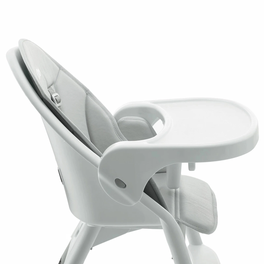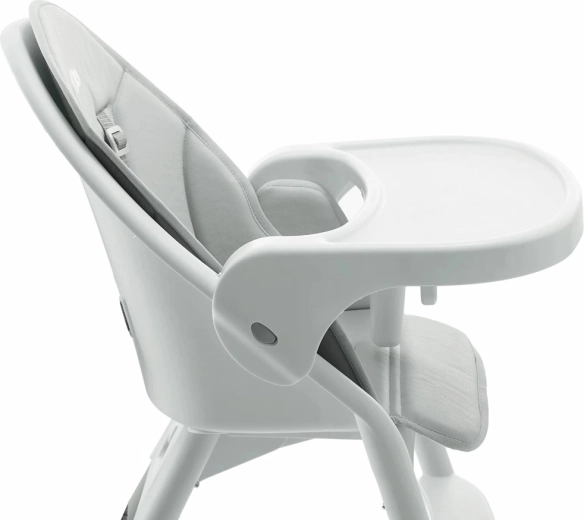 Polstrovaná vložka je mäkká, vodoodolná a ľahko umývateľná, takže údržba po jedle je otázkou okamihu. Odnímateľný podnos z bezpečných, certifikovaných materiálov slúži ako tácka aj praktický nárazník. Správnemu sedeniu napomáha opierka nôh, zatiaľ čo 5-bodový bezpečnostný pás drží dieťa spoľahlivo na mieste.