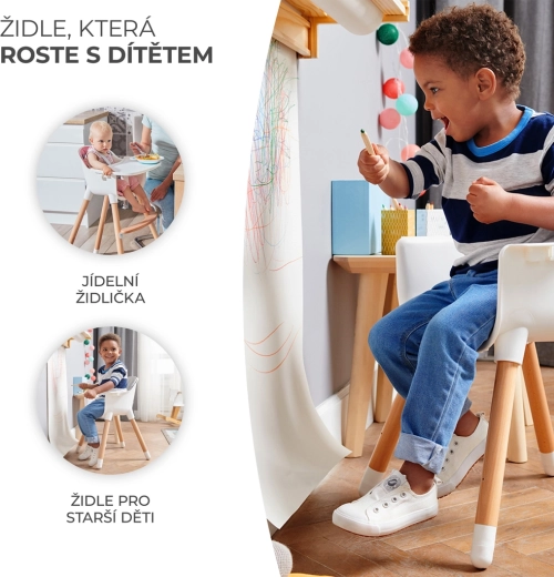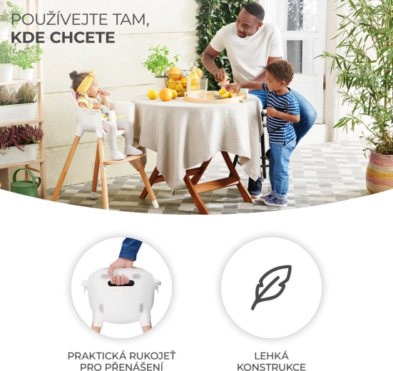 • 2v1 – počas chvíľky z vysokej stoličky vytvoríte nižšiu stoličku pre staršie dieťa.