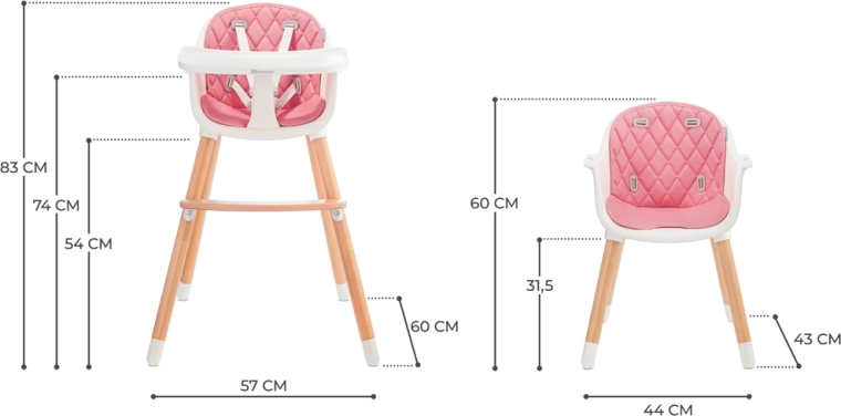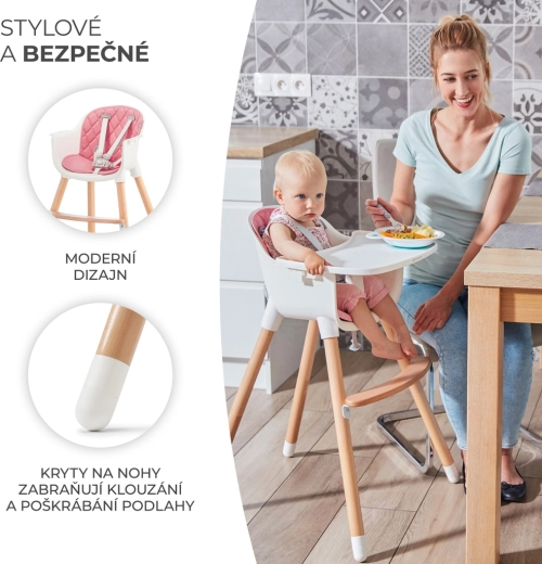 Kinderkraft jedálenská stolička Sienna 2v1 ružová