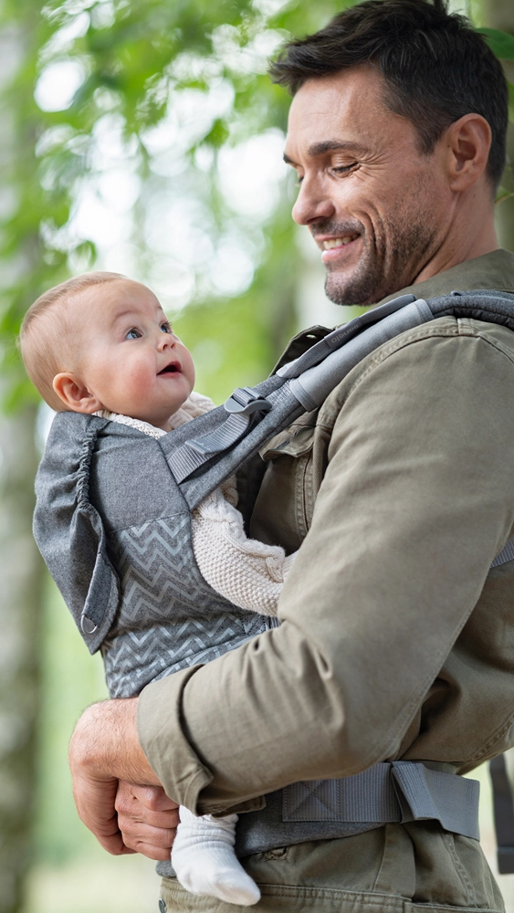 Plne nastaviteľný panel rastie s vaším dieťaťom a prispôsobí sa jeho postave. Polstrované ramenné popruhy a široký bedrový pás rovnomerne rozkladajú hmotnosť, čo výrazne znižuje záťaž chrbta a ramien. Praktické detaily, ako sú bavlnené návleky na popruhoch proti odieraniu pokožky, opierka hlavy a kapucňa pre pokojný spánok či ochranu proti vetru, zvyšujú komfort nosenia po celý deň.