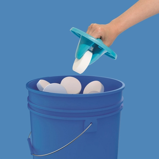 Regulovateľný dávkovací krúžok vám umožní presne nastaviť prietok a tým aj rýchlosť rozpúšťania tabliet. Gumová rukoväť vo viečku zaisťuje pohodlné a bezpečné vkladanie tabliet bez priameho kontaktu s chémiou. Dvojfázový bezpečnostný zámok viečka pomáha zabrániť nechcenému otvoreniu, napríklad deťmi.