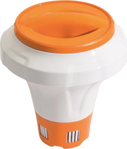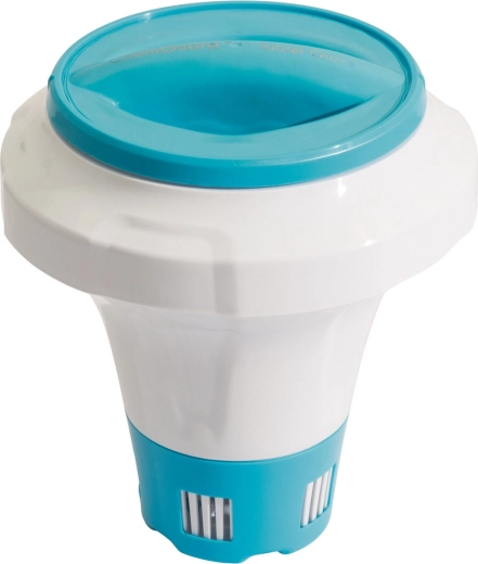 Praktický plávajúci dávkovač chémie BESTWAY zaistí bezpečnú a rovnomernú dezinfekciu vody vo vašom bazéne. Vďaka regulovateľnému krúžku ľahko nastavíte intenzitu dávkovania, gumová rukoväť chráni ruky pri manipulácii a odolný polypropylén zaručuje dlhú životnosť. Vhodné pre chlórové alebo brómové tablety s priemerom až 7,6 cm.