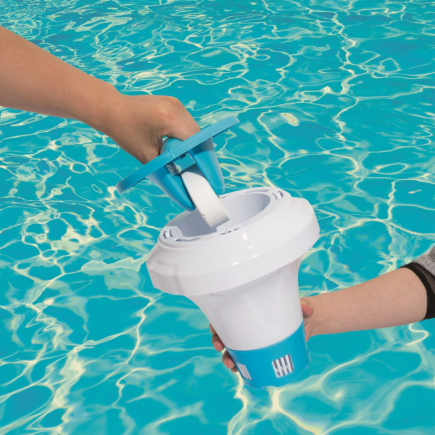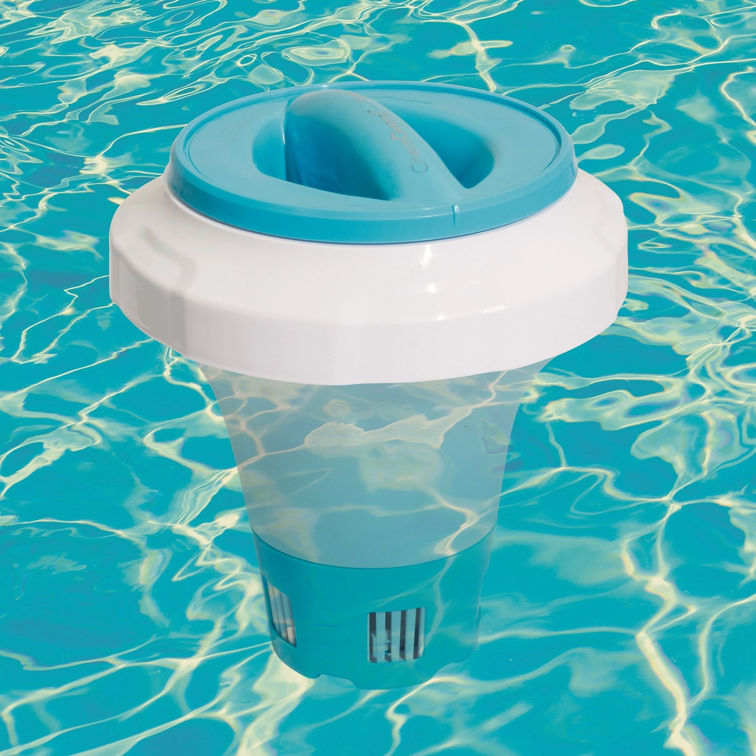 Udržujte vodu v bazéne krištáľovo čistú a hygienicky bezpečnú s plávajúcim dávkovačom BESTWAY. Stačí vložiť tabletu pod viečko a dávkovač začne postupne uvoľňovať účinnú látku do vody. Plavák je vyrobený z nekorodujúceho a odolného polypropylénu, takže je ľahký, stabilne pláva na hladine a odolá slnečnému žiareniu aj chémii.