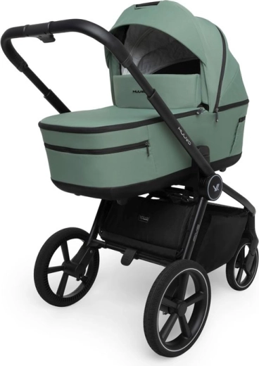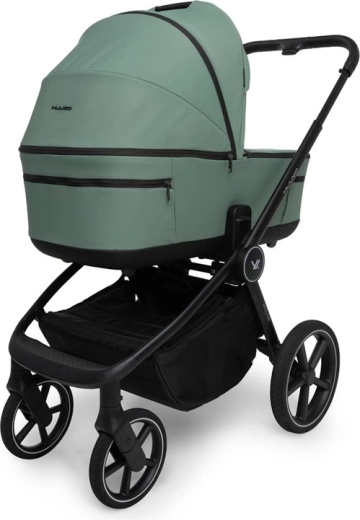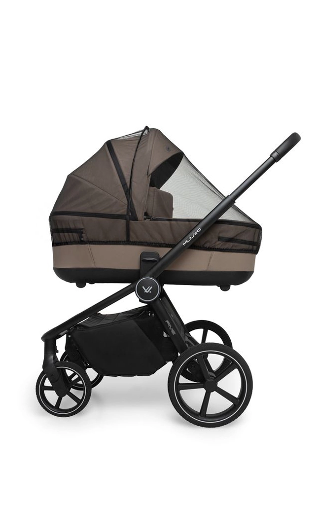 Súčasťou balenia je bohatá výbava na celý rok: sieťka proti hmyzu, slnečná clona pre vaničku, pláštenka, nánožník, prebaľovacia taška a vloženka z pamäťovej peny. Praktický košík s nosnosťou do 10 kg a integrované výškové adaptéry pre vaničku aj športovú časť podčiarkujú pohodlie rodičov.