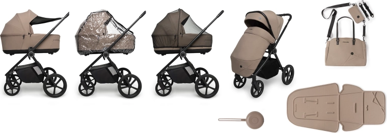 - sieťka proti hmyzu, slnečná clona pre korbu, pláštenka, nánožník pre športovú časť, taška s odnímateľným puzdrom na telefón, vložka z pamäťovej peny, puzdro na cumlík