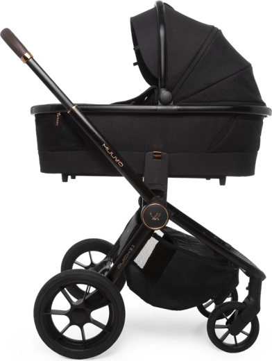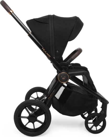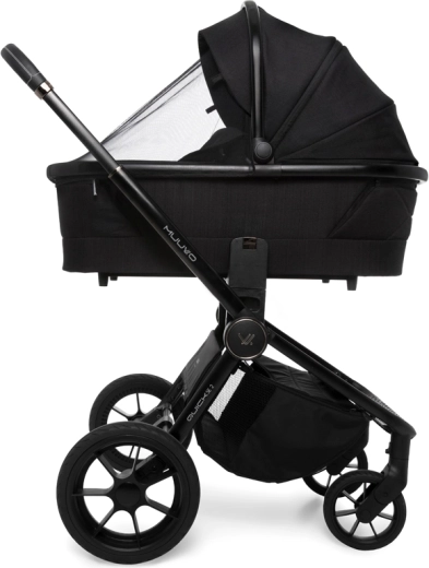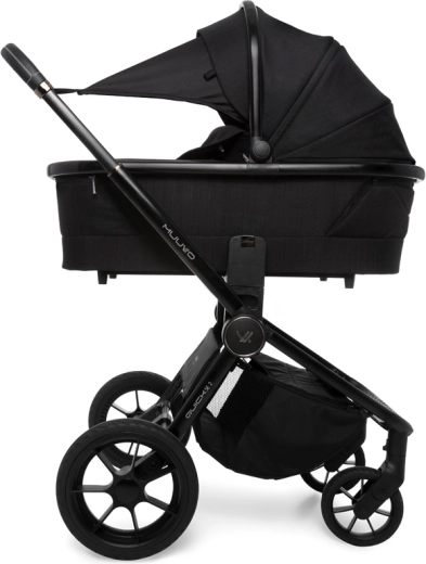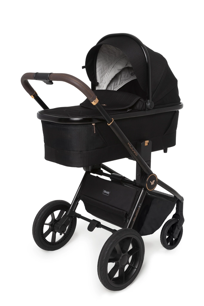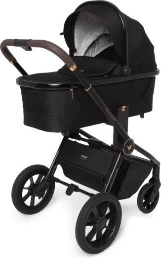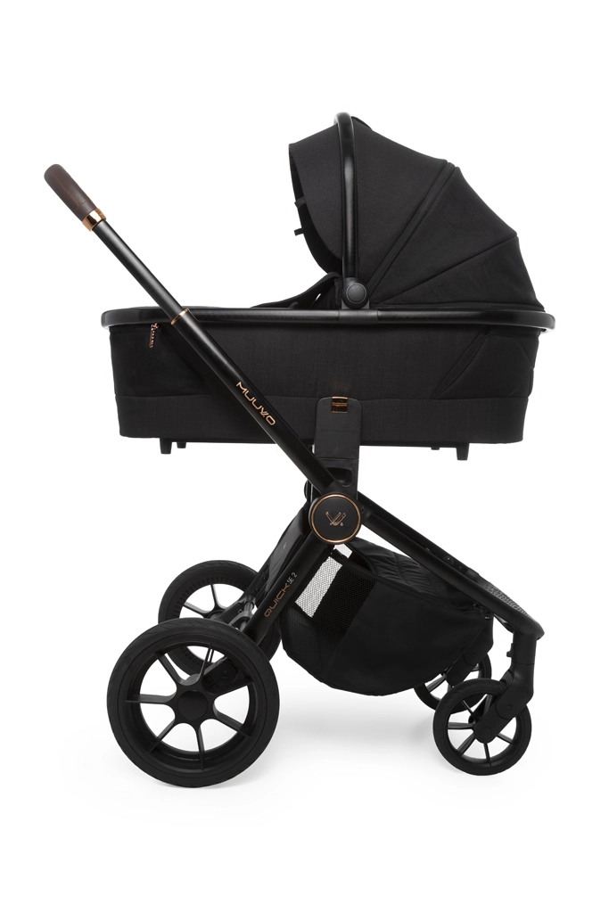 Hlboká vanička s Memory Buttons a dvoma ventilačnými okienkami ponúka komfort pre novorodencov, možno ju nasadiť priamo na rám alebo na výškové adaptéry. Rodičia ocenia teleskopickú rukoväť, veľký uzavretý košík, jednoduché skladanie aj novú priestrannú prebaľovaciu tašku s možnosťou zavesenia na rukoväť. Gélové, neprepichnuteľné kolesá s odpružením a aretáciou predných kolies zvládnu mesto aj ľahší terén.