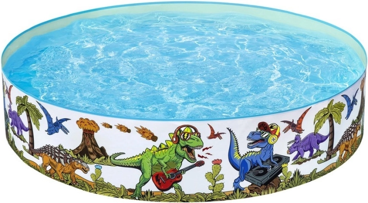 Zabezpečte deťom zábavu a osvieženie počas horúcich dní s okrúhlym bazénikom Bestway s motívom dinosaurov. Má rodinný priemer 183 cm, pevné vinylové steny a podlahu z PVC pre vyššiu odolnosť. Farebná potlač dinosaurov podporuje hru, jednoduché zostavenie šetrí čas a kapacita až 946 l zaručí dosť priestoru na šantenie.