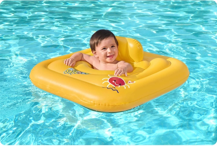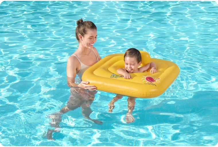 Doprajte svojmu dieťaťu prvú radosť z vody v bezpečí a pohodlí. Štvorcový plavák so sedátkom je navrhnutý pre batoľatá od cca 1 roka a poskytuje spoľahlivú podporu vztlaku aj stabilitu na hladine. Vďaka integrovanému operadlu sedí dieťa pohodlne a správne, zatiaľ čo hlboké sedátko s otvormi na nožičky bráni skĺznutiu do vody.
