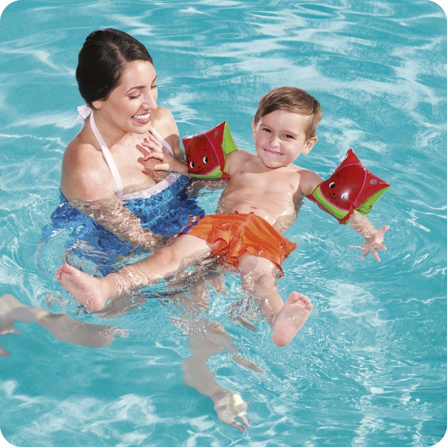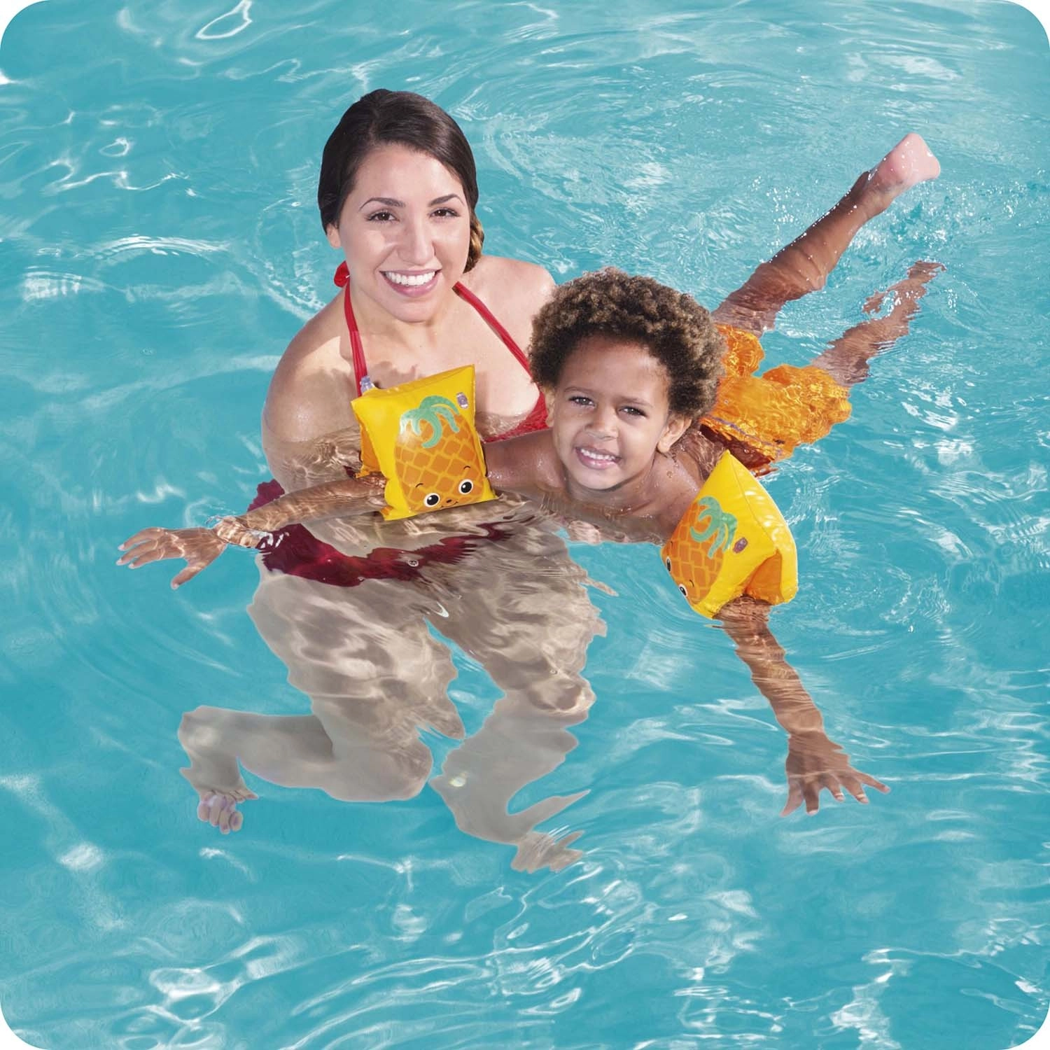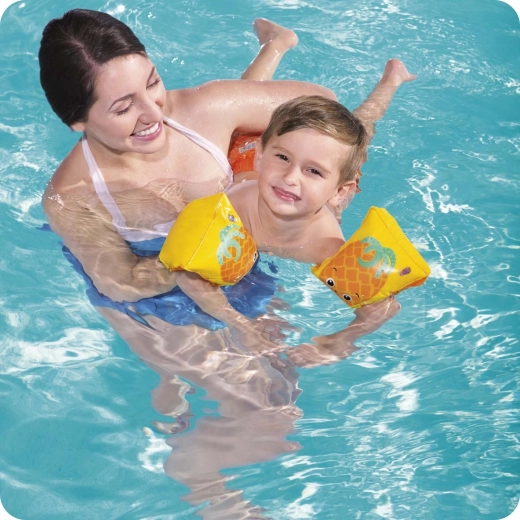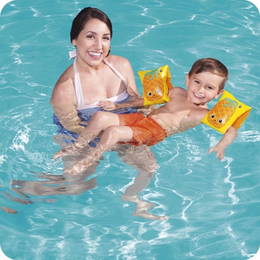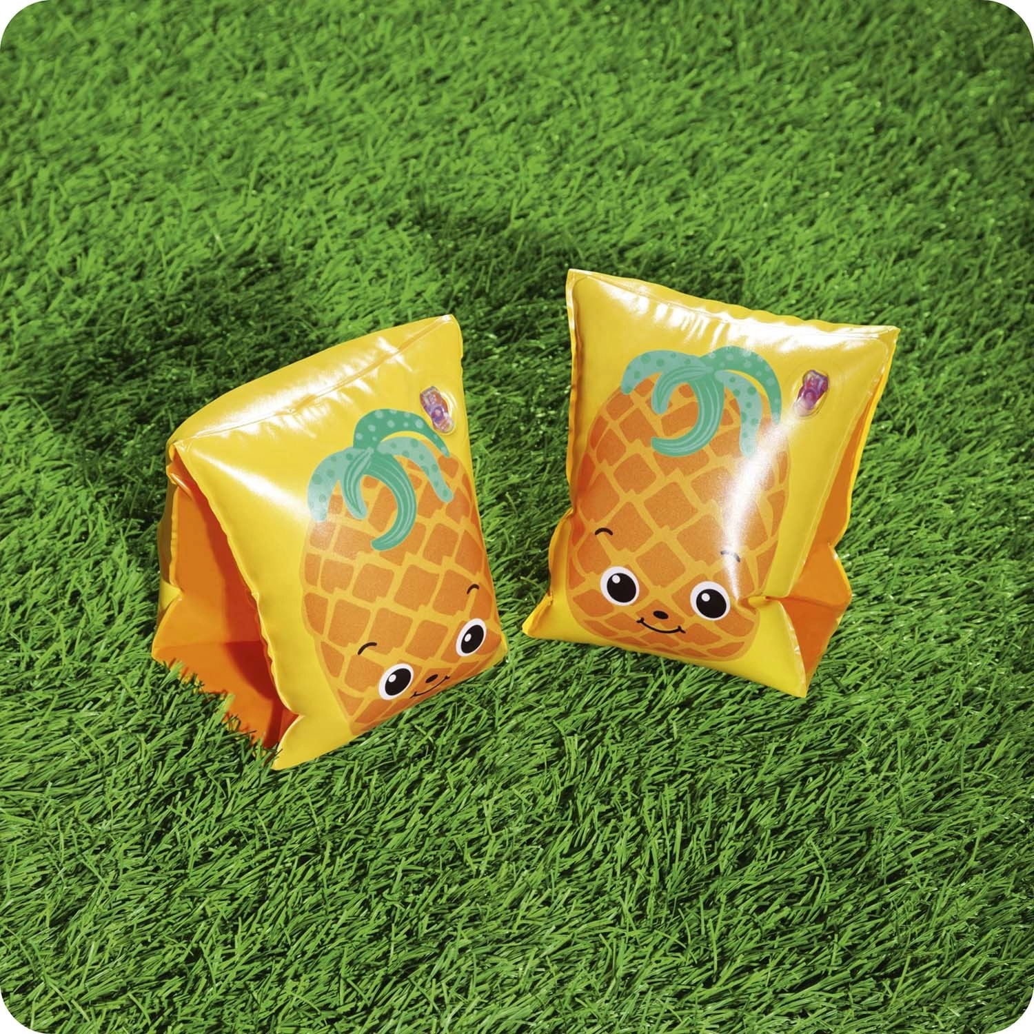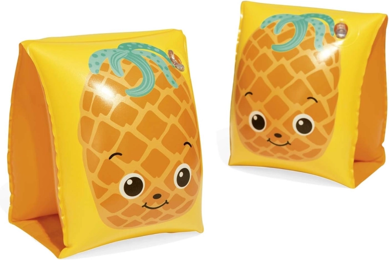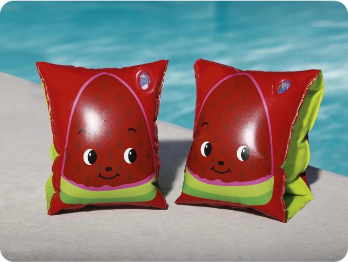 Objavte zábavu vo vode s nafukovacími rukávnikmi BESTWAY v ovocnom dizajne. Dve nezávislé komory zvyšujú bezpečné nadnášanie a pohodlie, zatiaľ čo hravé motívy melóna a ananásu motivujú deti k učeniu plávania a hraniu sa vo vode.