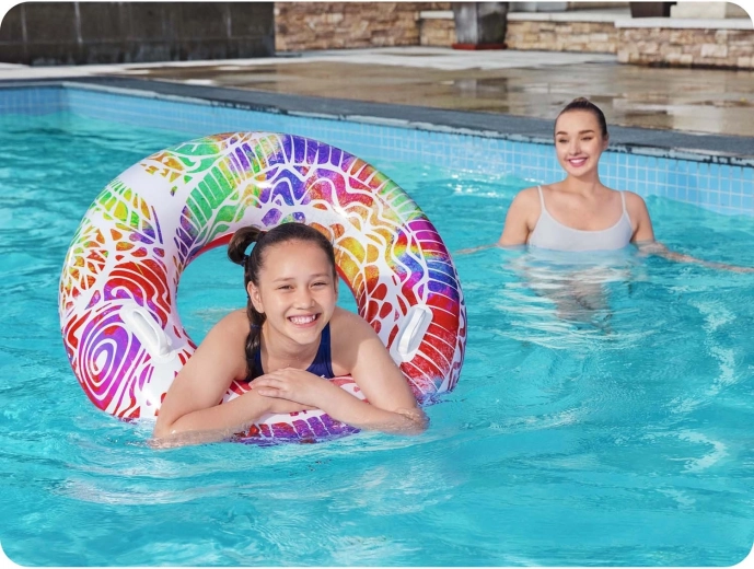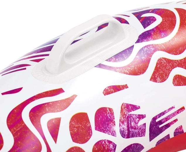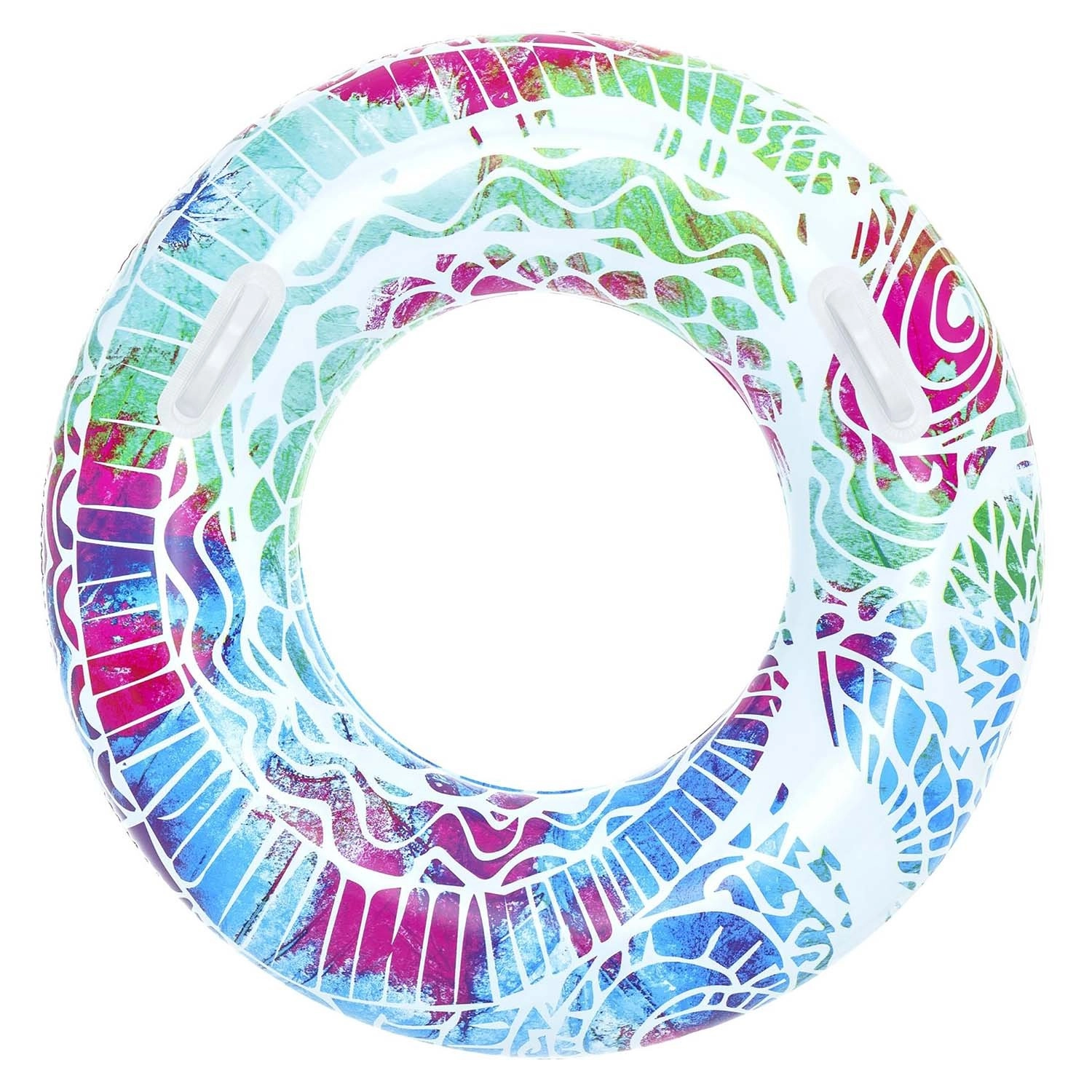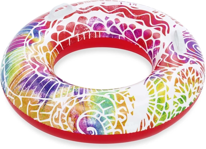 Tento štýlový plavecký kruh z odolného PVC zvláda slnko aj slanú vodu, takže je skvelou voľbou k bazénu aj na pláž. Veľký priemer 91 cm poskytuje pohodlnú oporu a lepší vztlak pre deti od 10 rokov.