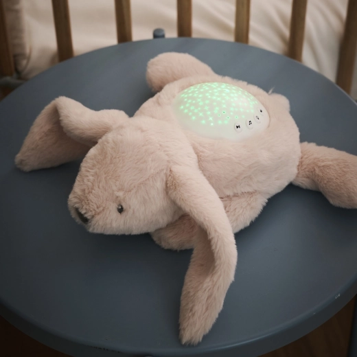 Nattou hudobný projektor s nočným svetlom v podobe mäkkučkého béžového zajačika je ideálny spoločník na večerné rituály. Zaistí jemnú projekciu hviezdičiek v niekoľkých farbách a odprevadí bábätko k zaspávaniu uspávankami aj bielym šumom. Bezpečná LED technológia sa nezohrieva, takže je vhodná do detských izieb.