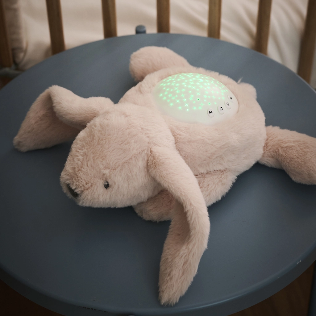 Roztomilý plyšový zajačik s integrovaným projektorom a hudobným modulom premení detskú izbu na pokojnú oázu spánku. Ponúka projekciu hviezdnej oblohy v rôznych farbách, upokojujúce uspávanky a biele zvuky (dážď, vlny, tlkot srdca) a bezpečné LED svetlá, ktoré sa nezohrievajú. Vďaka časovaču na 20 minút a nastaviteľnej hlasitosti pomáha bábätkám ľahko zaspať a rodičom prináša pokoj.