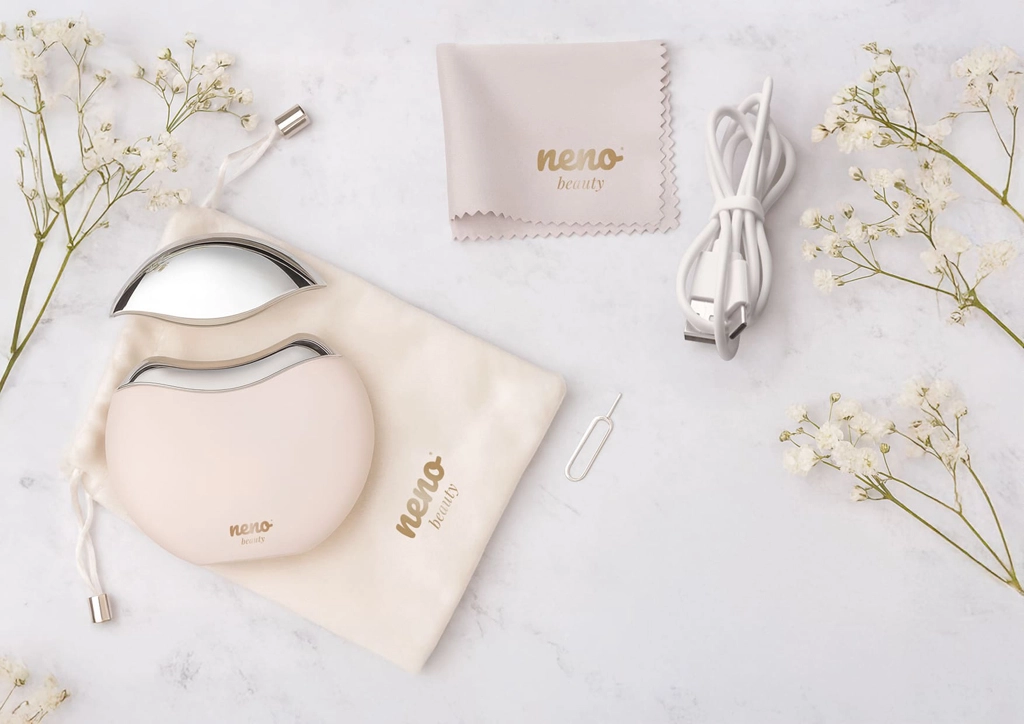 Neno Beauty Auri je elegantné 5 v 1 zariadenie na omladenie pleti tváre a krku. Spája rádiofrekvenciu, EMS mikroimpulzy, červené LED svetlo 620 nm a sonické vibrácie v ergonomickej hlavici v tvare Gua Sha. Vďaka dvom režimom – Proti starnutiu a Rozjasnenie – ľahko zacielite na spevnenie kontúr, vyhladenie jemných vrások a zjednotenie tónu pleti.