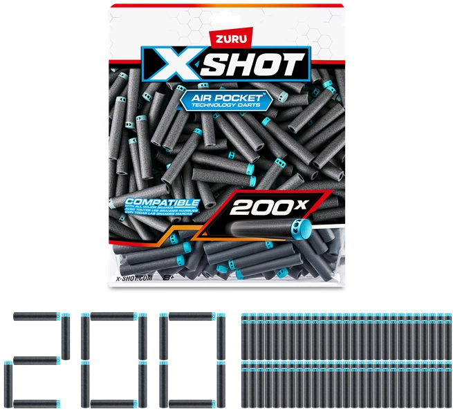 Doplňte svoj arzenál o sadu 200 náhradných šípok ZURU X-SHOT, ktorá udrží akciu v plnom prúde. Šípky s aerodynamickým dizajnom pre lepšiu presnosť a dosah, odolným a bezpečným materiálom a kompatibilitou so všetkými blastrami X-SHOT. Skvelé na vonkajšiu zábavu, súťaže aj tímové hry.