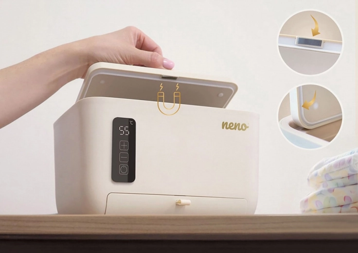 Doprajte bábätku komfort pri každom prebaľovaní. Neno Calme je inteligentný ohrievač vlhčených aj suchých obrúskov s nastaviteľnou teplotou 45–55 °C, ktorý udržiava ideálnu vlhkosť a bráni podráždeniu citlivej pokožky. Ponúka rýchly ohrev, tichý chod, magnetické veko s tesnením a praktickú zásuvku na doplnky – všetko v elegantnom, bezpečnom prevedení s dotykovým ovládaním.