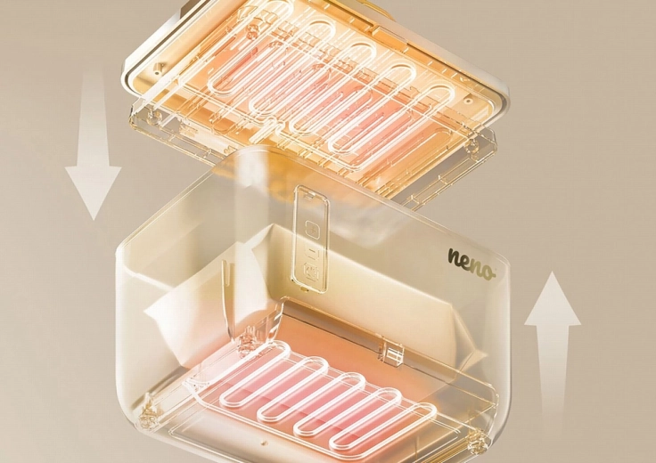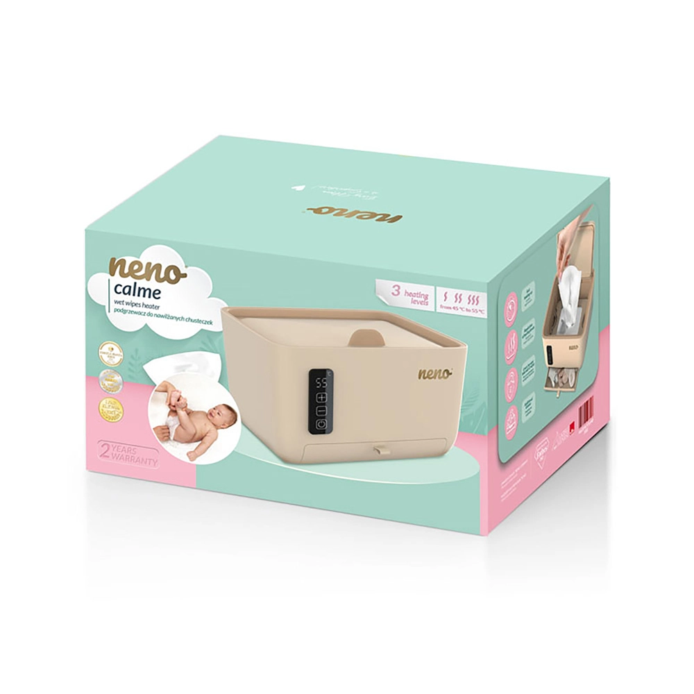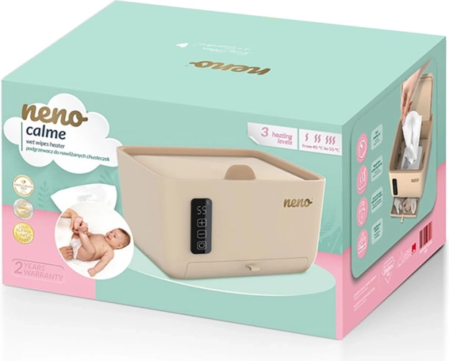 Neno Calme je moderný ohrievač a box na obrúsky, ktorý zvyšuje pohodlie pri starostlivosti o bábätko. Vďaka trom úrovniam ohrevu (45/50/55 °C) a obojstrannému ohrevu zhora aj zdola poskytuje obrúskom rovnomernú, príjemnú teplotu bez rizika prehriatia či vysychania. Magnetické veko s tesnením šetrí energiu a pomáha udržať vlhkosť vo vnútri.