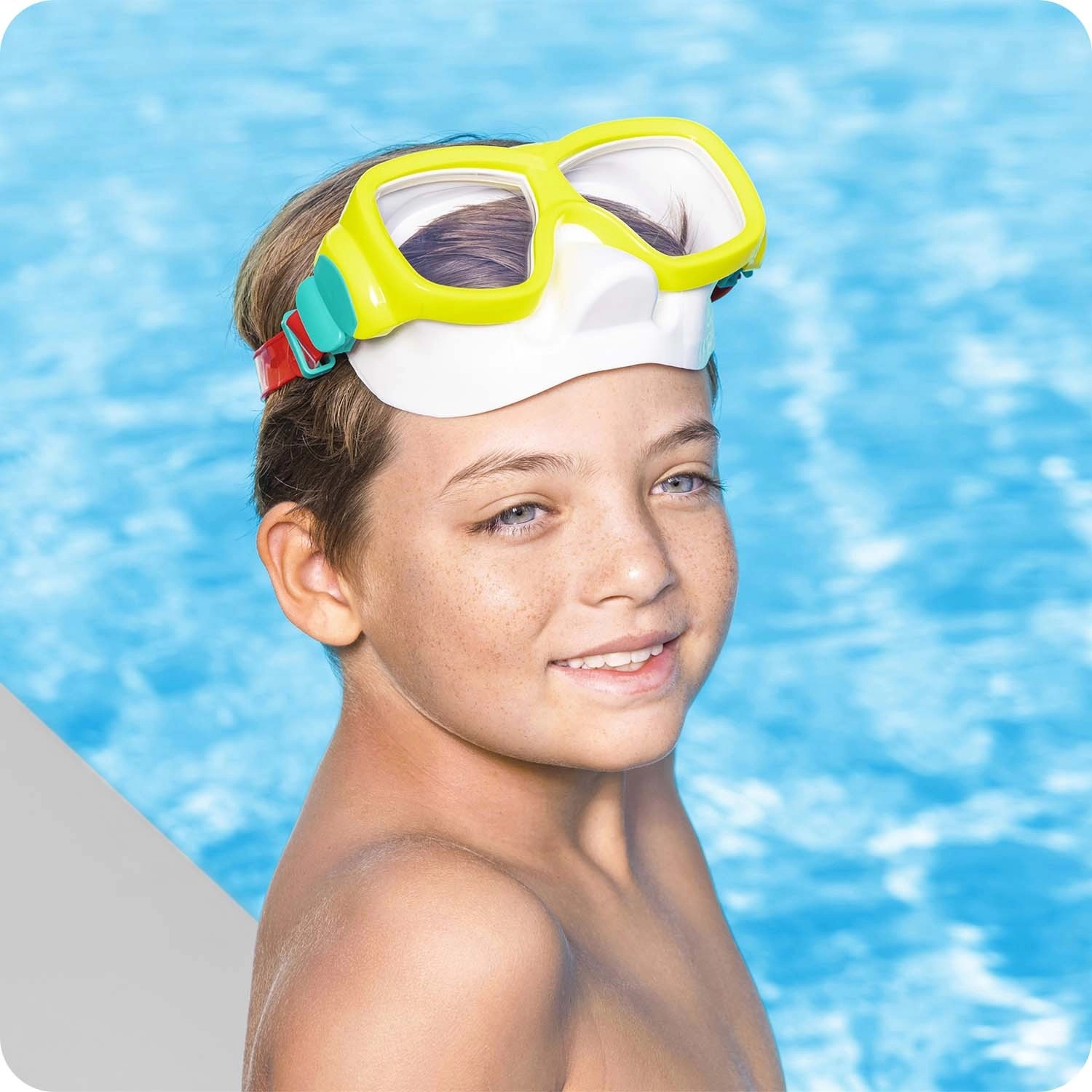 Objavte radosť z plávania a šnorchlovania s touto detskou maskou Bestway, ktorá ponúka široké zorné pole, pohodlné prispôsobenie tvári a nastaviteľný pásik pre bezpečné držanie. Polykarbonátové šošovky s UV ochranou chránia oči a zabezpečujú čistý výhľad pod vodou. Bez latexových materiálov a v univerzálnej veľkosti pre deti od 7 rokov.