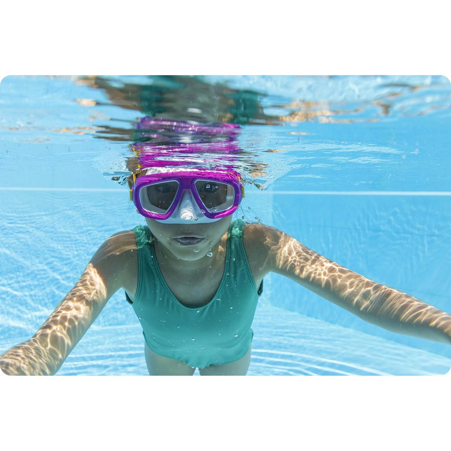 Ružová plavecká a šnorchlovacia maska BESTWAY je ideálna do bazéna aj k moru. Odolné polykarbonátové šošovky s UV filtrom chránia oči a poskytujú jasný výhľad. Univerzálna veľkosť s flexibilnou lícnicou sa prispôsobí väčšine tvarov tváre a minimalizuje vnikanie vody.