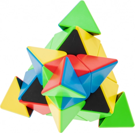 Tento hlavolam je vyrobený z farebných plastových dielikov, ktoré do seba zapadajú a vytvárajú atraktívny geometrický tvar.