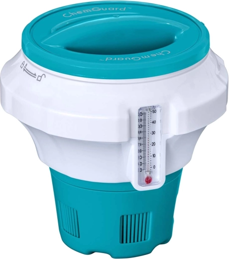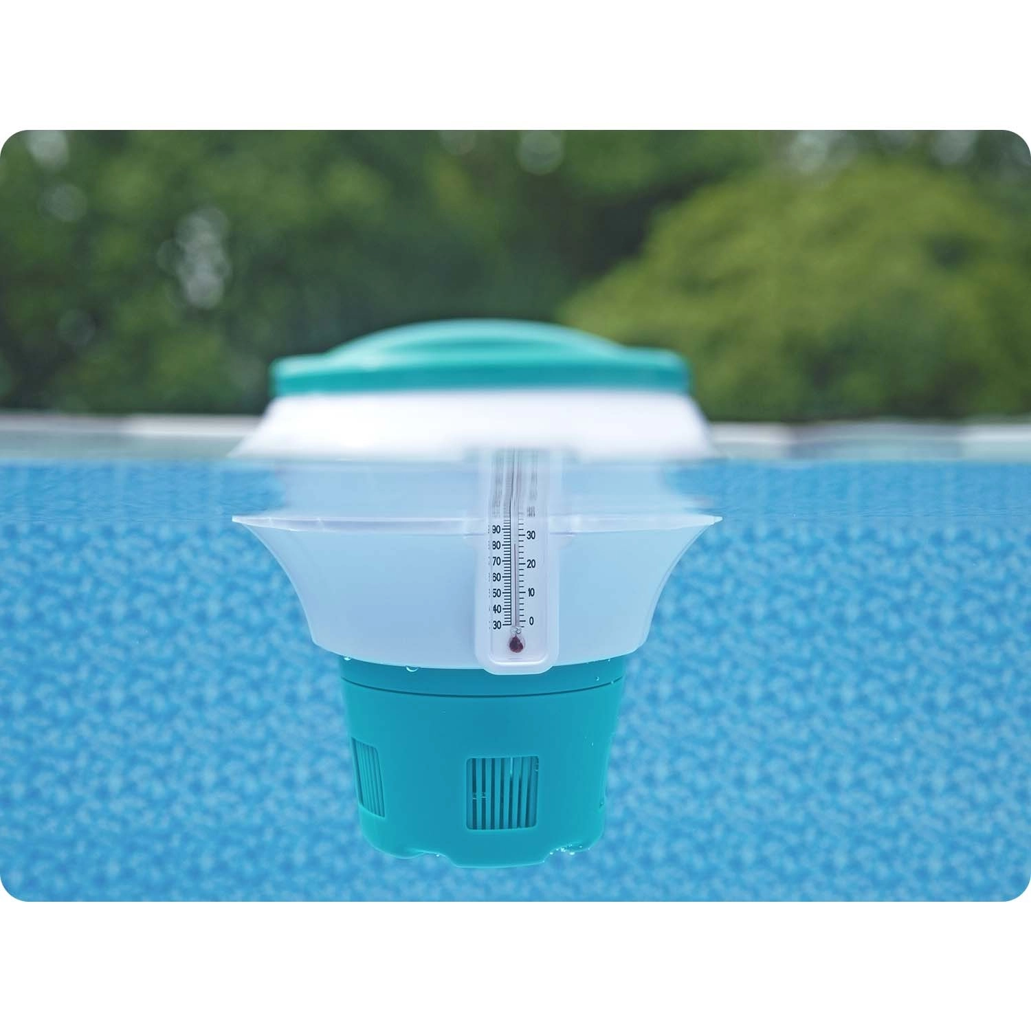 Plávajúci dávkovač BESTWAY ChemGuard je spoľahlivé riešenie pre priebežnú dezinfekciu vody. Vložíte tabletu s priemerom 7,6 cm (3"), nastavíte prietok a dávkovač sa postará o rovnomerné uvoľňovanie chlóru či brómu. Integrovaný teplomer v °C aj °F vám poskytne okamžitý prehľad o teplote vody, takže vždy viete, kedy je ideálny čas na kúpanie aj kedy prípadne upraviť dávkovanie.