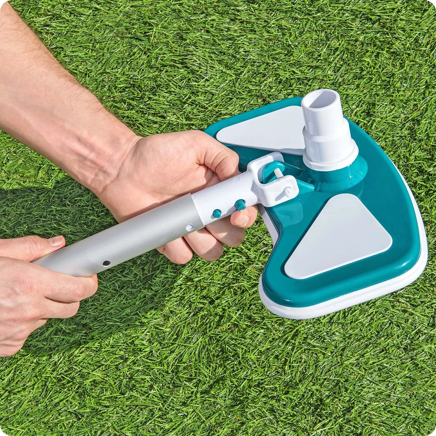 Vysávač Bestway AquaClean je praktické riešenie na rýchle a efektívne čistenie bazéna. Široká sacia základňa s hustými kefami uvoľňuje a zachytáva usadené nečistoty, zatiaľ čo pripojenie k hadici zabezpečí spoľahlivý odťah. Nízkoprofilová, ľahko ovládateľná hlavica sa hladko pohybuje po dne aj v rohoch.