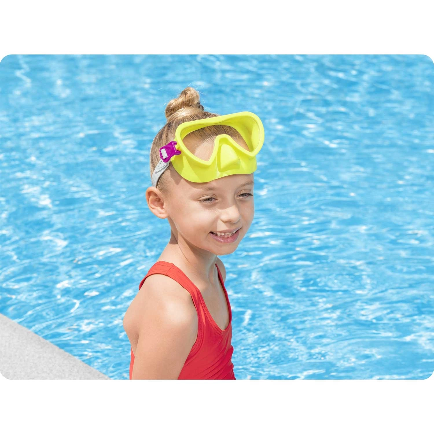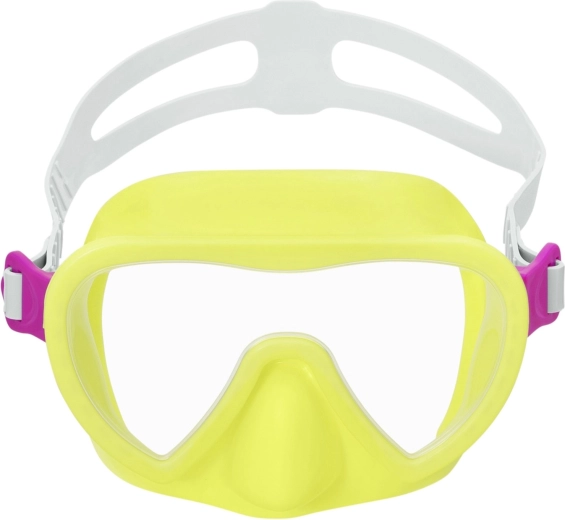 Užite si vodné radovánky s detskou potápačskou maskou Bestway v žiarivo žltej farbe. Poskytuje široké zorné pole, pohodlné a tesné usadenie na tvári a vďaka nastaviteľnému pásiku vždy skvele drží. Polykarbonátové sklo s UV ochranou zabezpečí jasný výhľad pod hladinou a bezpečie pre oči.