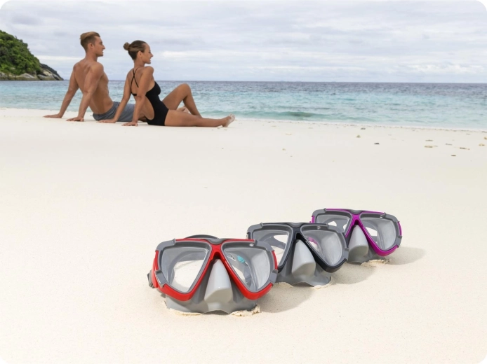 Maska je ideálna na rekreačné šnorchlovanie aj plávanie v mori či bazéne. Vďaka nastaviteľnému pásiku si ľahko nastavíte správnu veľkosť a stabilné usadenie. Bezlatexové prevedenie je šetrné k citlivej pokožke.