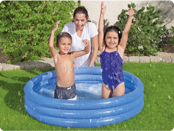 Odolný materiál PVC zvládne každodenné používanie a v prípade drobných nehôd oceníte priloženú opravnú záplatu. Jednoduché nafúknutie a vyfúknutie uľahčí manipuláciu aj skladovanie. Bazénik je určený pre deti od 2 rokov pod dohľadom dospelej osoby.