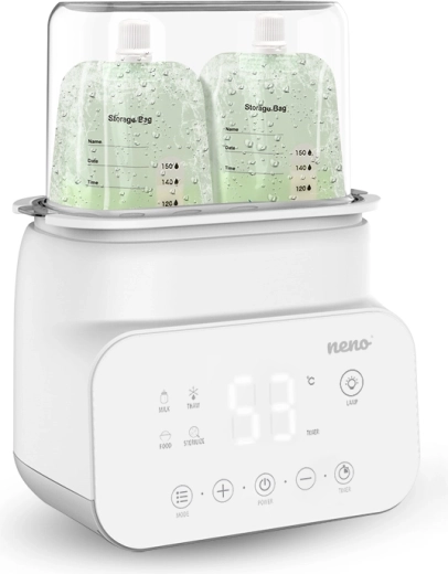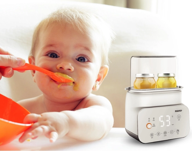 Uľahčite si starostlivosť o bábätko s prístrojom Neno Vita 5v1 – šikovným pomocníkom, ktorý sterilizuje, ohrieva mlieko, ohrieva jedlo, rozmrazuje a udržiava stálu teplotu. Vďaka prehľadnému LCD displeju, dotykovým tlačidlám a modernému minimalistickému dizajnu zvládnete všetko rýchlo, bezpečne a pohodlne – od prípravy mlieka po hygienickú sterilizáciu fliaš a cumlíkov.