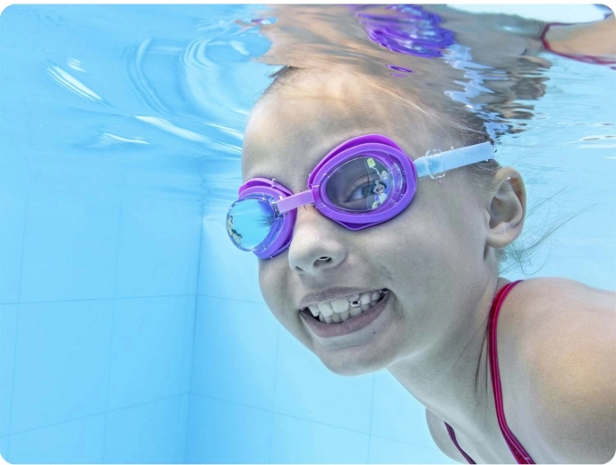 Nastaviteľný silikónový pásik zaistí, že sa okuliare spoľahlivo prispôsobia tvaru tváre a zostanú na mieste aj pri aktívnom plávaní. Vhodné pre deti od 3 rokov – ideálne do bazéna, na kúpalisko aj na dovolenku pri mori.